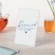 A very minimalist table sign with the word Reserved in a very thin calligraphy script in royal blue makes the perfect accessory to any modern wedding theme table.