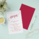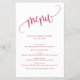 Minimalist Calligraphy Script, Magenta Paper Menu