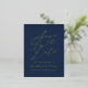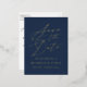Announce your upcoming wedding in style with our Minimalist Calligraphy save the date postcards. The elegant save the date postcards feature the words "Save the Date" in a gold foil script with your names, wedding date, and wedding location shown below on a navy background. The back of the foil save the date postcard features your return address and wedding details. Designed to coordinate with our Minimalist Calligraphy wedding collection.