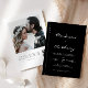 Modern & chic black and white wedding invitation featuring elegant calligraphy script and personalized monogram initials with personalized QR code, custom photo and more wedding detailed information on the back.