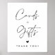 This elegant Cards & Gifts sign features a stylish minimalist design. The sign brings together the best of both worlds, with trendy calligraphy and modern sans serif typography seamlessly blended into a beautiful and harmonious union. Its sleek and sophisticated design is sure to leave a lasting impression on your guests, making it a perfect addition to your special day.