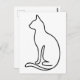 Minimalist Cat Line Art – Black Outline Silhouette Postcard