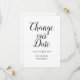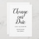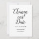 This minimalist black and white change our date card features an elegant script with your details set in modern typography. The reverse has additional details, including your website, with your return address and space for your recipient's address. Designed by Thisisnotme©