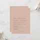 Set the tone for your special day with this minimalist chic wedding invitation, featuring a classic dusty rose background paired with elegant dark grey script typography. The clean, timeless design blends modern sophistication with romantic charm, making it perfect for couples seeking a subtle yet striking look for their wedding stationery. Whether you’re planning a formal celebration or an intimate gathering, this invitation exudes effortless style and sets the stage for a memorable event. Fully customizable with your details, it’s the ideal choice for a refined and elegant wedding theme.