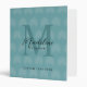 Minimalist Chic Teal Anahaw Leaf Script Monogram Binder