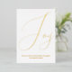 Classy Minimalist Christmas script joy gold and white holiday card. This card has real gold foil text and is fully customizable and simple to personalize by adding your own name details and photo. Perfect for sending to friends and family for the holidays.