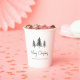 Bring effortless elegance to your holiday entertaining with these personalized Christmas paper cups from the Simple Wish collection by Redwood & Vine Design Co. Designed with a minimalist black-and-white evergreen tree illustration and refined typography, these cups are perfect for Christmas parties, family gatherings, or corporate holiday events. A stylish and understated addition to your holiday tableware that makes cleanup easy while keeping your celebrations beautifully cohesive.