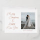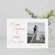 A minimalist design with modern calligraphy and fonts in rose foil. (There are options for foil colours.) There is a placeholder for the couple's special image and the backside has a personalized message. Fonts are customizable.