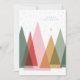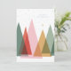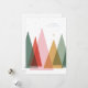 A modern and minimalist holiday design with simple overlapping triangular Christmas trees in soft pastel colours. Snowflakes gently fall in the background, creating a peaceful holiday atmosphere.