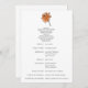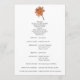 Our elegant wedding program featuring a stunning orange chrysanthemum flower design at the top for a touch of charm. This beautifully designed program includes traditional fonts to showcase your wedding party and important program details for your special day. Ensure your guests have all the information they need while adding a touch of sophistication to your wedding decor with this lovely program.