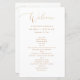 This wedding program features elegant gold style calligraphy paired with clean serif text on a white background. Designed for simplicity and sophistication, it outlines your ceremony order in a clear, easy to read layout. The printed gold effect (not real foil) creates a luxe touch without extra cost. Perfect for modern, minimalist, classic, or formal weddings. This customizable program adds a refined and personal detail to your big day.