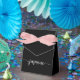 Simple Clean Minimalist Girly Black Monogram Name Signature Script Custom Personalized Favour Box. This design featuring your first name in a pretty hand lettered style swash tail font signature typography (or calligraphy) in white on black colour background. These stylish girly feminine gift boxes great for handing out, gifts, guest gifts and treats during an upcoming birthday party, BBQ, baby shower, wedding reception, bachelorette party, sweet 16 birthday, bridal shower, anniversary and more.