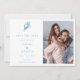 Blue Minimalist Vintage Floral Seashell Coastal Photo Wedding Save the Date with your photo on the right hand side of the card.