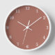 Minimalist Cocoa Sienna Wall Clock, an attractive wall clock featuring stylish white numbers on a reddish brown earth-tone colour background.