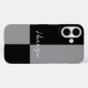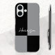 Make a statement with this bold geometric case, a sleek and stylish accessory for your phone. This modern case features striking black and grey blocks, paired with your name in script text for an individual touch. Idea as a personalized gift or an upgrade to your everyday tech, this case mixes practicality with a simple minimalist aesthetic.