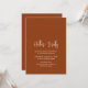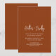 Modern boho wedding invitation featuring a simple design with your names in an elegant script typography and your event details in a minimalist sans serif font. All design elements are in white over a terracotta / copper background. This chic wedding invitation is great for a fall / autumn wedding.