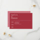 Announce your special day with our minimalist save the date, designed to match our minimalist crimson red wedding invitation suite. Featuring a warm crimson red color, this card captures the joy and excitement of your upcoming celebration. The text is in an easy-to-read font, ensuring your message is clear and stylish. With thoughtfully arranged typography, this save the date combines beauty and simplicity, setting the perfect tone for your wedding. Ideal for couples who appreciate modern, understated design.