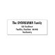 This basic rubber stamp design features a customized family name, along with a customized personal address.