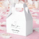 The romantic minimalist design features lovely and elegant typography on a white background with a clean and simple look. Personalize the favour box with your name and the date.