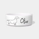 Add a touch of elegance to mealtime with our Minimalist Dachshund Line Art with Name Bowl featuring a charming line art Dachshund and your pet's name. Personalize this bowl to make meal moments even more special for your furry friend. Treat your pet to a delightful dining experience with a bowl as unique as they are. Order yours now and watch your beloved pet enjoy every meal.