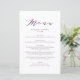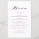 Customizable script menu card featuring elegant script, simple typography and stripes pattern. This script menu card is perfect for any wedding theme and season. Personalize by adding names, date and menu details.
