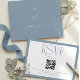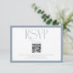 Announce your upcoming celebration with this classic blue wedding RSVP card. The clean white space is framed by a tasteful blue border, creating a timeless aesthetic. A dedicated section for your wedding website and QR code simplifies the RSVP process, while the prompt 'By August Eighth' ensures timely responses. This card is designed to impress your guests and streamline your wedding coordination with its understated elegance.