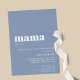 A modern typographic baby shower invitation with "mama" as the main headline on a dusty blue background.