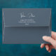 Complete your wedding stationery suite with the Minimalist Dusty Blue Wedding Envelope. Featuring a sophisticated dusty blue background, the inside top flap showcases the bride and groom’s initials in crisp white, adding an elegant personal touch. The outside top flap displays the bride and groom’s name and address in white lettering for a cohesive, modern design. Perfect for modern, romantic, or minimalist weddings, this envelope blends style and practicality, ensuring your wedding invitations arrive in stunning fashion.