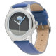 Stainless Steel Frame and Blue Leather Band: Stylish and enduring, with other colour options available based on availability.