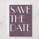 Minimalist Elegant Art Deco Wedding Save The Date in Aubergine and White with Photo on Back