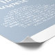 Embrassez l'élégance avec notre poster d'accueil de Baby shower moderne et minimaliste, mettant en vedette la calligraphie mignonne dans les tons blancs bleus poussiéreux. C'est l'accent parfait pour la douche de votre petit. Customisez le libellé pour convenir à votre événement sans effort! Vous pouvez modifier entièrement le texte et les couleurs arrière - plans. Cliquez sur le bouton "Customiser plus" pour commencer!" Contacter notre concepteur pour les produits correspondants et les variations de conception