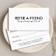 Simple black and white referral card for beauty related professionals. Clean cool fully customizable card. Perfect marketing tool for reward you best and new customers.