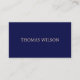 Minimalist fully customizable business card template. Elegant design with dark blue background and bold fonts. Perfect networking card for any professions.
