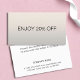 Minimal fully customizable discount card with faux silver background and bold fonts.