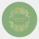 Minimalist Elegant Floral Green And Golden Colour Classic Round Sticker