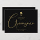 The imposing silhouette of a distinguished gentleman, adorned with a top hat, mustache, and bow tie, graces the front of the card, exuding a timeless elegance in its simplicity. The contrast between the intense black and the brilliant gold creates a striking visual effect that reflects the grandeur of the occasion.