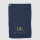 Minimalist Elegant Monogram Dark Blue Gold Stylish Golf Towel