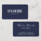 Professional Elegant Navy Blue Business Card with rounded corners general name in a luxurious Chic style followed by specialty in front, full script name, career and info in white.