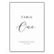 This elegant black calligraphy table one table number is perfect for weddings and other events. The neutral design features a minimalist card decorated with romantic and whimsical typography. The card prints on the front and back (double-sided). Other table numbers in the collection are sold separately.