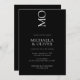 This minimalist all-in-one wedding invitation design in black and white exudes timeless elegance with its clean, modern layout and refined typography. Featuring a vertical monogram at the top and classic serif fonts throughout, it offers a sophisticated introduction to your special day. The front of the card includes essential details in a beautifully balanced format, while the back provides clear, organized details like dress code, online RSVP instructions, accommodation arrangements, or any other additional information, and a QR code that links to the website of your choice. Perfect for couples seeking a sleek and upscale aesthetic, this invitation set is ideal for formal weddings, black-tie events, or celebrations held at luxurious venues. Available as printed cards or an instant digital download.
