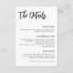 Immerse your guests in the allure of clean lines and modern aesthetics with this fully customizable details card. Your unique style and wedding details take centre stage, adorned with a touch of refined elegance. The sleek black typography on pristine white not only promises a striking first impression but also ensures that every detail is presented with clarity and grace, maintaining the collection's commitment to understated beauty.