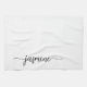 Modern Elegant Clean Minimalist Feminine Monogram Name Signature Script Custom Personalized Kitchen Towel. This design featuring your first name in a pretty hand lettered style swash tail font signature typography (or calligraphy) in black on white colour background. These are easy to customize it. Great stylish feminine housewarming gift, also for birthday, mother’s day, wedding, bridal shower and It’s for the girl who loves unique clean minimalist things.