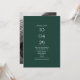 A modern minimalist design featuring your special date and wedding details set in classic, chic typography on an emerald green background. Add your favorite photo on the reverse. Designed by Thisisnotme©