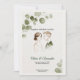 A beautiful and modern wedding invitation featuring soft watercolor eucalyptus leaves and a delicate illustration of a bride and groom. Perfect for a botanical, spring, or garden-themed wedding. Personalize the names, dates, and location details to create the perfect invite for your special day.