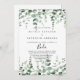 This minimalist eucalyptus Spanish wedding invitation is perfect for a modern wedding. The design features watercolor hand-drawn elegant botanical eucalyptus branches and leaves.