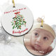 Minimalist first Christmas as grandparents ornament. Elegant and simple watercolor greenery with berries details and red bow detail. This customizable grandma and grandpa ornament the perfect gift this holiday. Slip your favourite photo of your child, the name and year. You can find more wonderful personalized Christmas gifts in the Personalized Christmas Gift Collection in the Beautifully Abstract store.