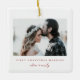 Minimalist First Christmas Married Photo Ceramic Ornament