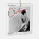 Remember your first married Christmas forever with this modern, minimalist black and white holiday ornament, featuring 'Christmas' in modern red hand lettered typography and your favorite wedding photo. The photo is repeated on the back, with your wedding date details overlaid. Copyright Anastasia Surridge for The Christmas Shop, all rights reserved.