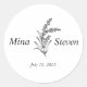 Minimalist floral black and white wedding classic round sticker
