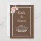 Introducing our gorgeous watercolor wedding invitation in a warm brown colour with a delicate white border. This invitation is perfect for those looking for a minimalist yet elegant floral design. The top left corner of the invitation features a beautiful pink flower surrounded by two white flowers and a few sprigs of greenery.